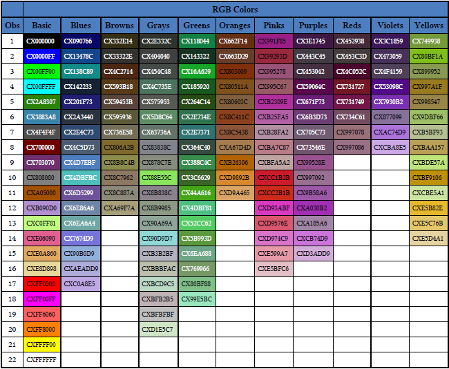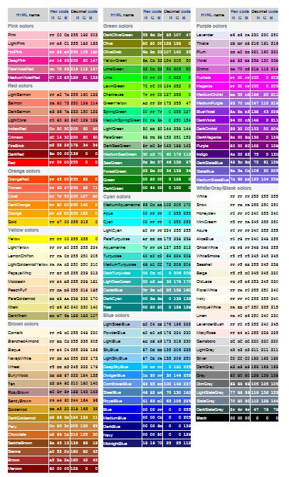 | DarkViolet | #9400D3 | rgb(148, 0, 211) |