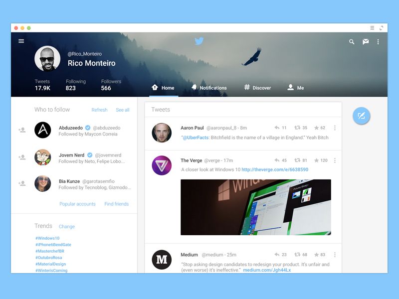 дизайнов, тем, шаблонов и графических элементов в стиле Material Design, загружаемых на Dribbble