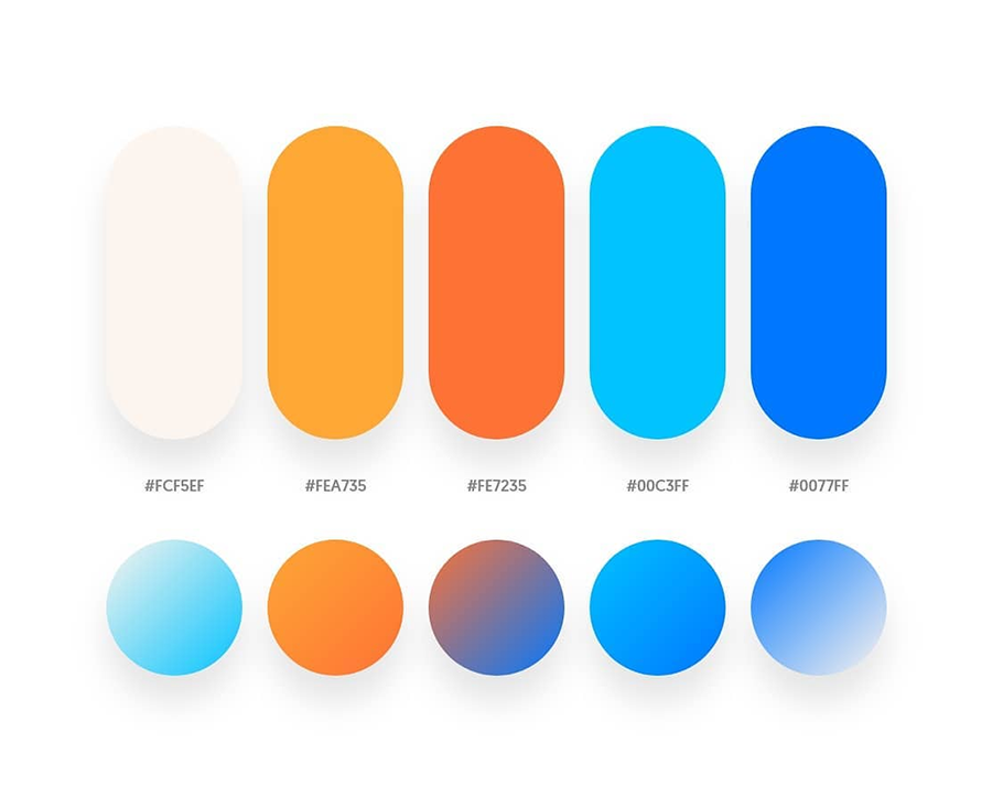 Мы могли бы использовать светло-оранжевый и один из синих оттенков в качестве основных цветов или даже только один цвет в качестве основного. Этот выбор зависит от нескольких вещей. Если: