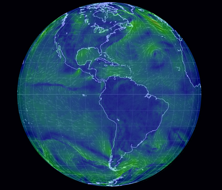 Преимущество Земли в том, что она глобальна и позволяет сразу получить много информации. Вы просто нажимаете на любую точку на земном шаре, чтобы получить информацию об этой области, такую как скорость и направление ветра.