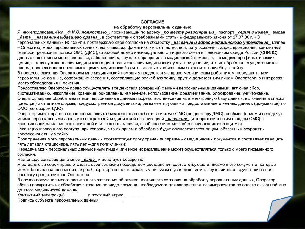Согласие должно быть конкретным и информированным.