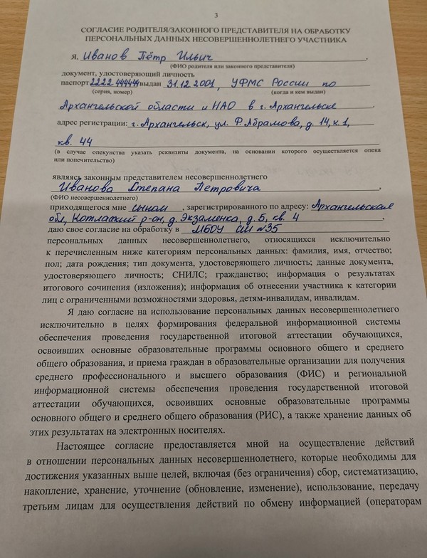 Согласие на обработку персональных данных