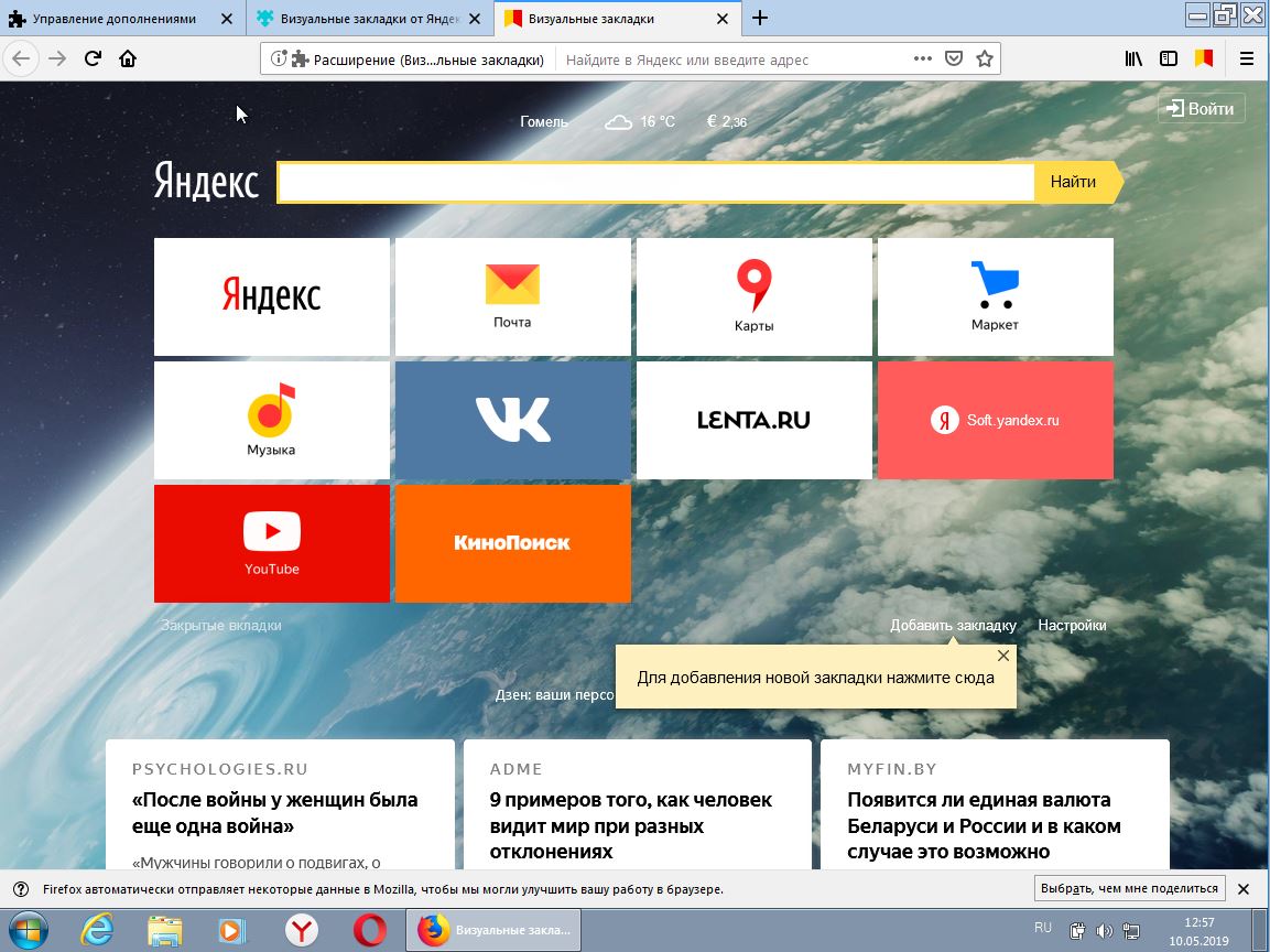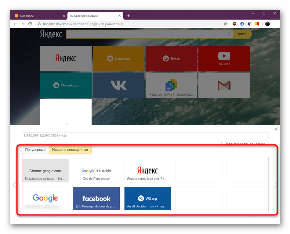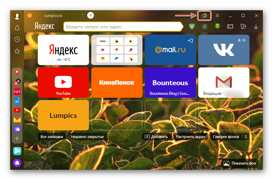 Тогда все добавленные страницы будут располагаться вверху программы, прямо под адресной строкой.
