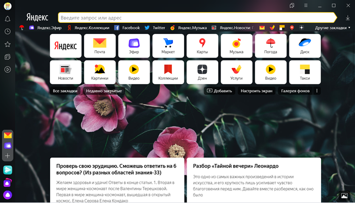 Иногда удобно начать работу с браузером прямо с открытой страницы «Закладки». Для этого нужно один раз настроить стартовую страницу Opera.