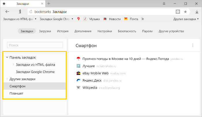 Также Яндекс.Браузер имеет возможность импорта и экспорта закладок … Что может быть удобно, когда нужно работать на разных компах с набором сайтов.