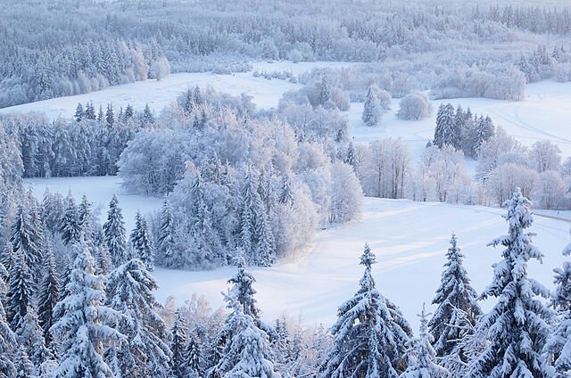 зимний пейзаж со снегом и деревьями — январь природа stok fotograflar ve resimlerЗимний пейзаж со снегом и деревьями