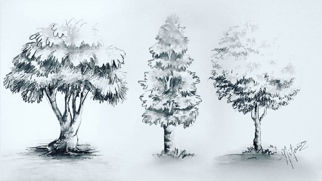 Если вы хотите, чтобы дерево или деревья были единственным фокусом вашего эскиза, то, скорее всего, вы захотите изобразить их более реалистично или, по крайней мере, более детально.