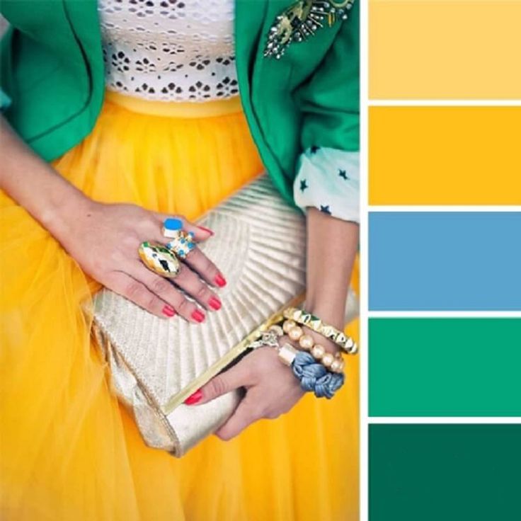 - Не сочетайте более четырех цветов в одном наряде: подберите по два основных и дополнительных оттенка. Зеленый при этом можно использовать и в качестве основного, и дополнительного цвета.