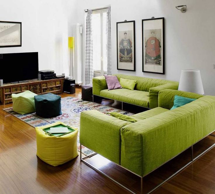 Основная задача бело-зеленого – это сделать помещение просторным, свежим, открытым. Если в нем и будет суета, то домашняя: игры детей, приемы родственников и близких друзей.