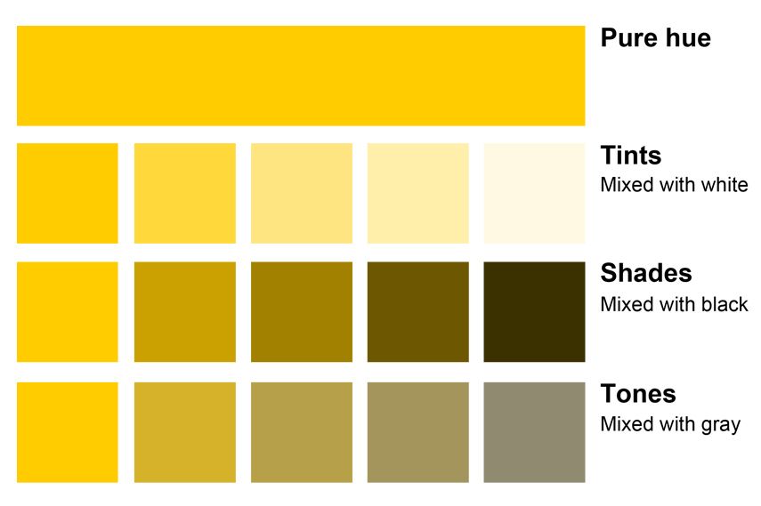 Оттенки в дизайне, от светлого до желтого есть множество оттенков