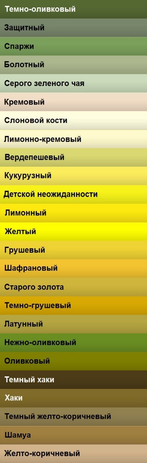 Названия оттенков желтого
