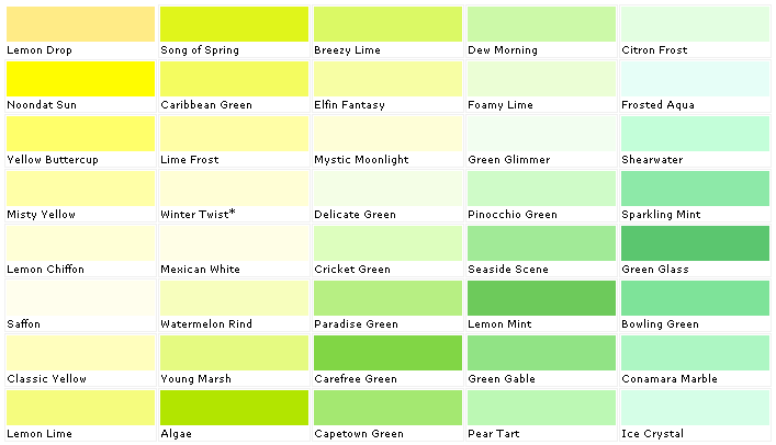 | Lemon Yellow | #fff44f | 0, 4, 69, 0 | 255, 244, 79 |