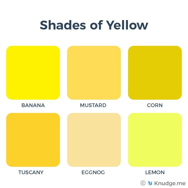 Желтый может быть светлым или темным, и существует так много разных названий желтых оттенков.