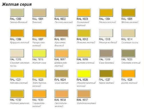 В своем первоначальном виде это чистый (без примесей) цвет и он имеет несколько самых известных оттенков: лимонный, неаполитанский желтый (почти цвет слоновой кости), желто-зеленый, бежевый, древесный, золотой и другие.