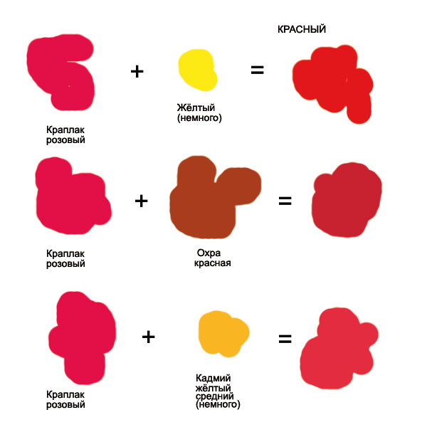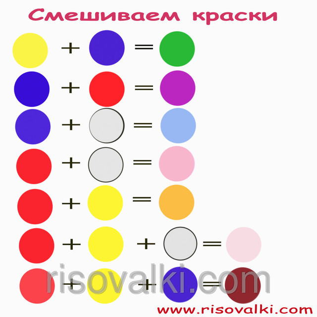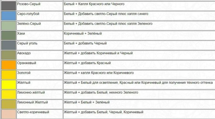| Нужный цвет | Основной цвет | Цвет для смешивания |