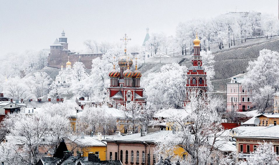 КазаньИз-за высокой влажности в столице Татарстана на Волге температура кажется значительно ниже, чем на самом деле. Так что от -15℃, которые показывает термометр, можно смело отнимать еще 5-10 градусов. Снега тут бывает много.