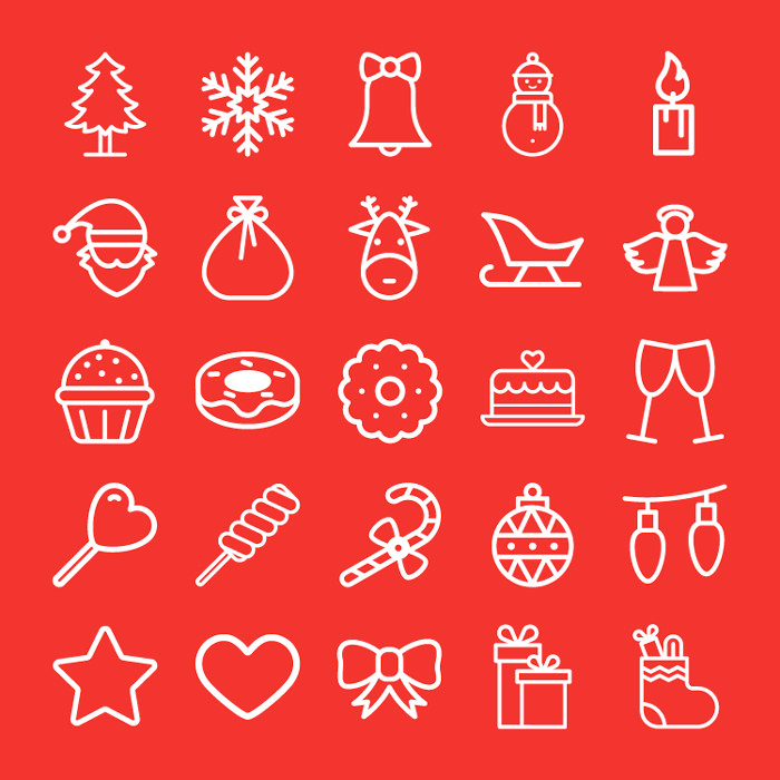 Это халява из Smashing Magazine содержит 24 рождественские иконки, доступные в AI, PSD, EPS, PDF, SVG и PNG форматах.