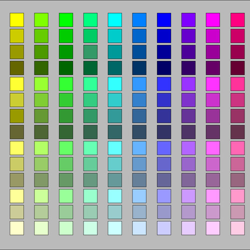 Так же, как и в случае с серыми, вам нужно выбрать из множества (5-10) более светлых и более темных оттенков.