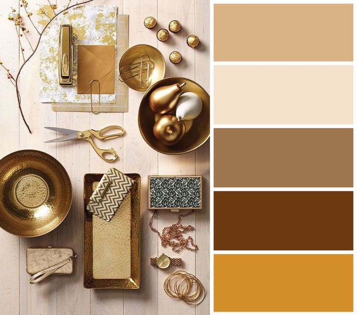 золотистая гамма неплохо сочетается с оттенками холодных и теплых цветов, поэтому предполагает огромные возможности для выбора;