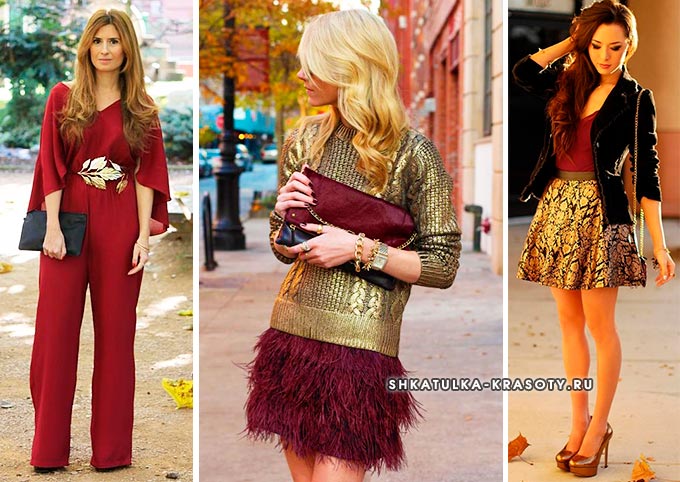 Темные тона синего, коричневого, винного, зеленого в тандеме с золотом выглядят еще благороднее. В моде сочетание фиолетового и золотого.