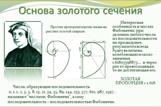 В конце 12 века математик из Италии Леонардо Пизанский, известный по прозвищу Фибоначчи, открыл последовательность чисел, связанных с золотой пропорцией.