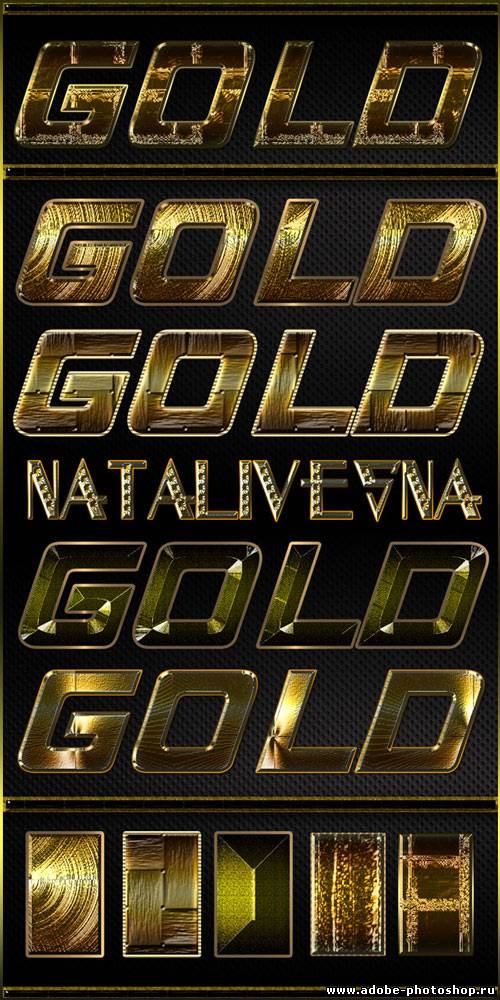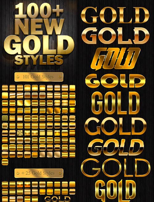 126 бесплатных загружаемых стилей слоя золота для Photoshop
