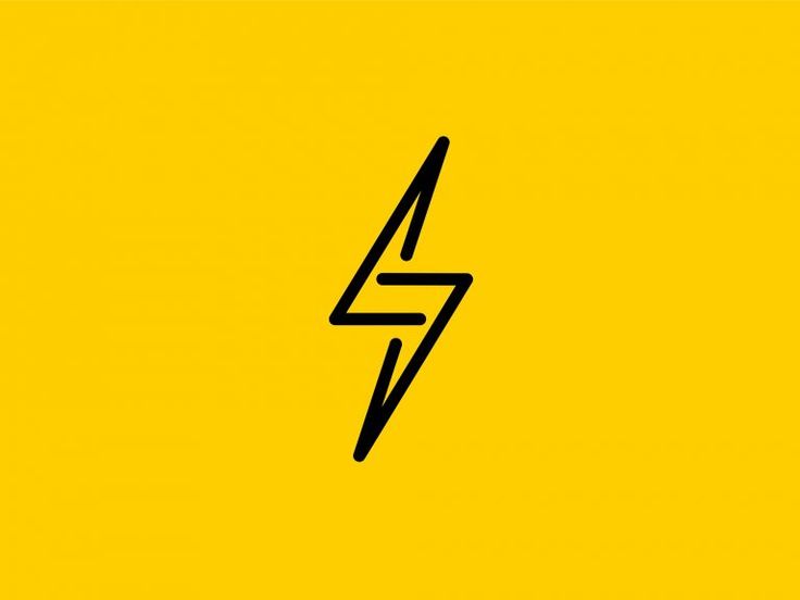 Линейное изображение молнии на плоском желтом фоне с текстом.