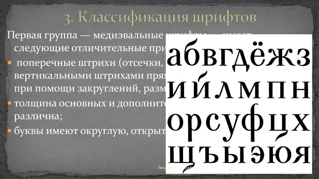 Для основного текста вам потребуется шрифт без засечек. На то, что у шрифта нет засечек, будут указывать такие слова в названии шрифта, как Sans, Gothic, Grotesque. Почему без засечек? Дело в том, что разрешения некоторых проекторов и экранов все еще недостаточно, чтобы отображать мелкие элементы. В мелком размере такие шрифты будут представлять трудность для чтения.