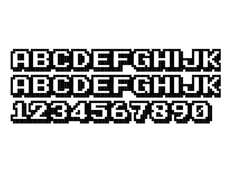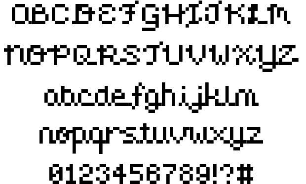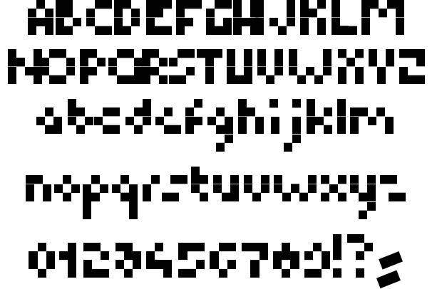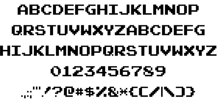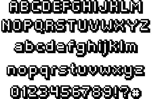 Вдохновленный ретро-аркадными видеоиграми, этот шрифт выполнен в классическом пиксельном дизайне. Этот шрифт также содержит заглавные буквы и включает в себя множество дингбатов с персонажами из классических игр, таких как Space Invaders.