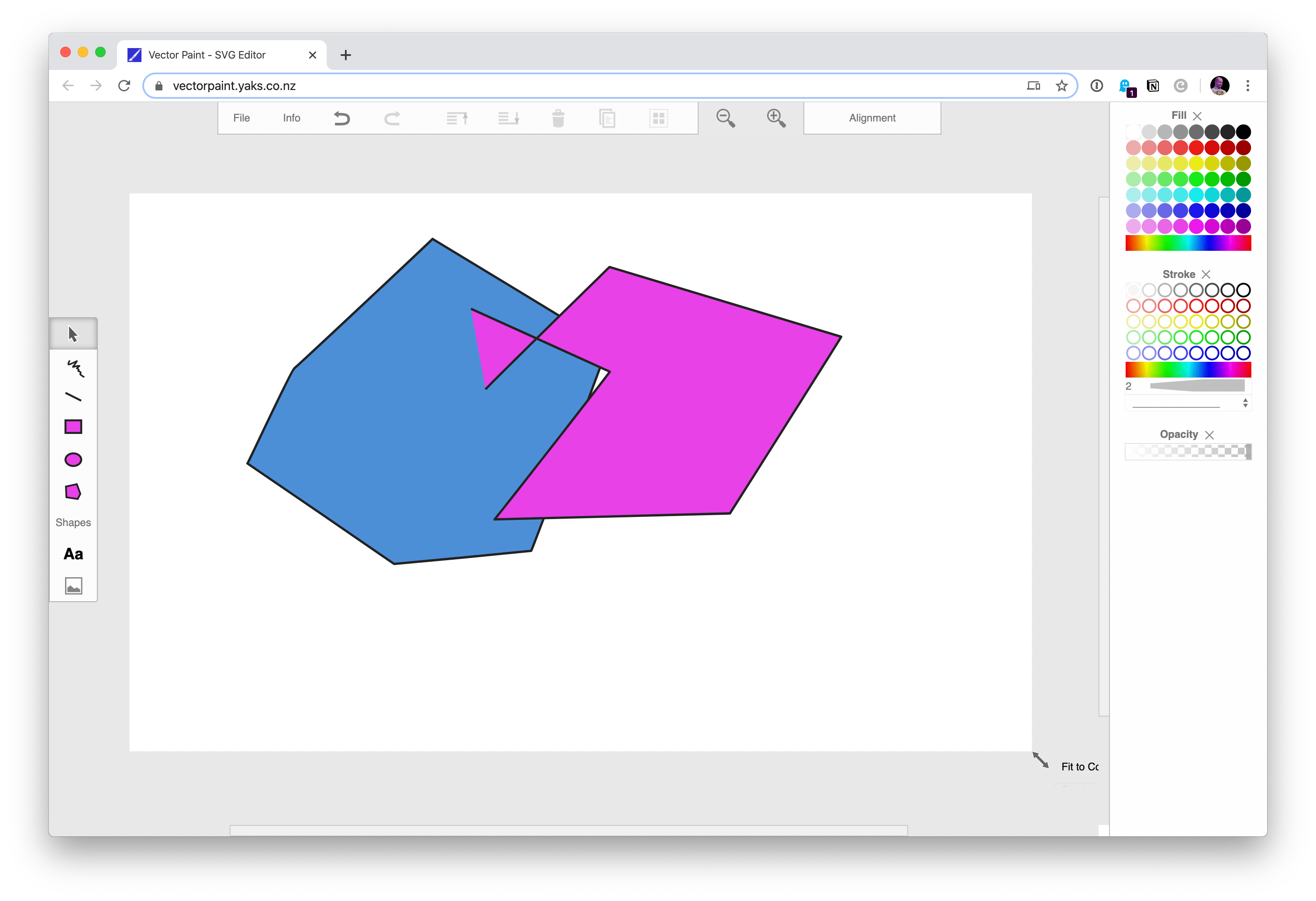 Select Tool позволяет выбирать, перетаскивать, масштабировать и вращать отдельные созданные шейпы, а также менять их настройки — заливку и цвет и ширину обводки.